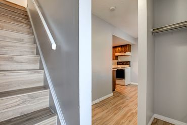 Sleek flooring throughout the main floor. Gas fireplace and neutral decor!